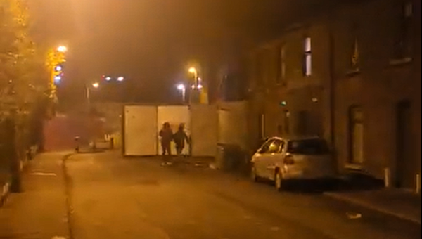 Six wheelie bins and wood pallets were also set on fire on the laneway. People could be heard shouting “Get them out”.