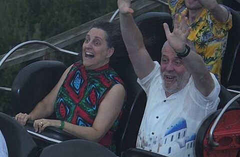 Roy Murray (56) and Delphine Coudray (47) decided to do something unique to mark their wedding day and so headed for Emerald Park to ride some rollercoasters for the first time in their lives.