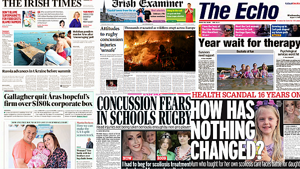 The Irish Examiner leads with a study into concussions in rugby, as attitudes to it are deemed unsafe.
