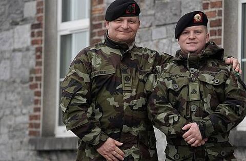Battalion Sergeant Major Patrick Enfield, who has been in the Defence Forces for 34 years, is travelling out with his son Private Adam Enfield, who is going on his first tour.
