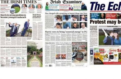 Friday's front pages focus on a range of stories from Simon Harris being next in line for the role of taoiseach to four men being charged with conspiracy to import “a large amount” of drugs into the State.