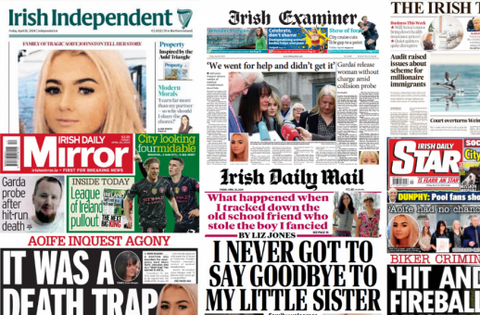 The paper also joins the Irish Examiner, Irish Independent, Irish Daily Mail and Irish Daily Mirror in covering the verdict of the inquest into the death of Aoife Johnston.