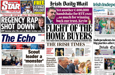 The Irish Daily Mail leads with a report on home buyers, while the Irish Daily Star covers the DPP's decision not to charge Patsy Hutch in connection with the Regency shooting.
