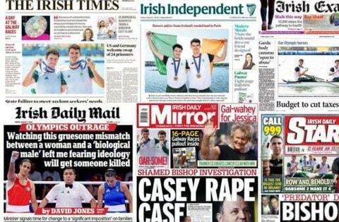 Team Ireland's latest Olympic medal win by Daire Lynch and Philip Doyle, Bishop Eamon Casey abuse allegations and Olympics boxing news all feature on Ireland's front pages on Friday.