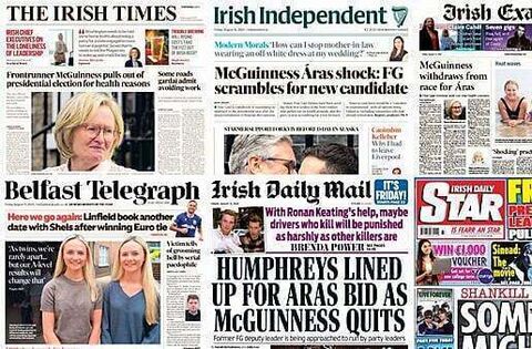 The Irish Times, Irish Examiner and Irish Independent lead with the shock decision of Mairead McGuinness to drop out of the presidential race for health reasons.