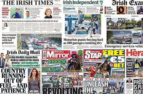 The ongoing fuel protests and their impacts dominate Irish front pages on Friday morning.