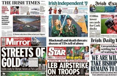 The Olympics closing ceremony and the build up to Team Ireland's homecoming features heavily on the front of Monday’s newspapers.