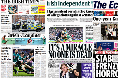 An update on rent pressure zones and the stabbing in Dublin makes the front pages of Monday's papers.