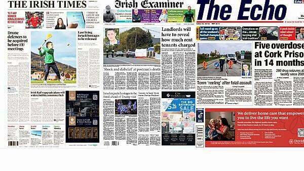 Monday's front pages focus on a range of stories, including the Government preparing for anti-drone defences, to 'shock' and 'disbelief' over the death of a postman in Cork.