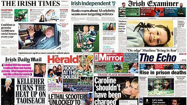 The Irish Examiner lead with mothers without homes fearing for their babies, a surge in fraudsters targeting those over 50 years of age, 'on edge' muslims 'living in fear' and world leaders gathering for COP30.