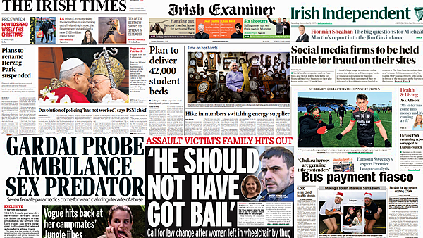 The Irish Daily Mail leads with allegations against an ambulance worker, with seven women coming forward.