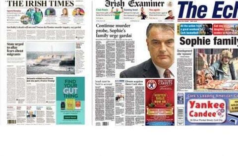 The Irish Times and Irish Examiner report a Garda cold case review of the investigation into the murder of film producer Sophie Toscan du Plantier will continue, gardaí said, despite the death of chief suspect Ian Bailey on Sunday.