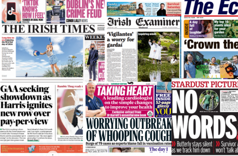 The Irish Daily Mail leads with concerns over the rising cases of whooping cough, with young babies most at risk of the illness.