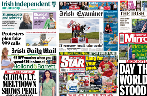 A global tech outage, further unrest in Coolock, and previews of the All-Ireland Senior Hurling Final are some of the stories covered on the front pages this Saturday.