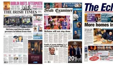 Saturday's front pages are focused on the aftermath of the Dublin riots as there have been calls for the Minister for Justice, Helen McEntee and the Garda Commissioner, Drew Harris to step down from their roles.