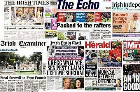 The funeral of Pope Francis and tributes to 18-year-old Bronagh English, who died after the car she was driving hit a wall and entered a river in Co Tipperary, dominate the front pages of Irish newspapers on Saturday.