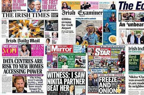 The Irish Daily Mail leads with data centres eating so much power in parts of the country that it risks the ability of new houses to connect to the electricity grid.