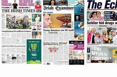 Saturday's front pages are focusing on a range of stories on Trump threatening 50 per cent tariffs on EU imports to an RTÉ row over actors being used for a promo video.