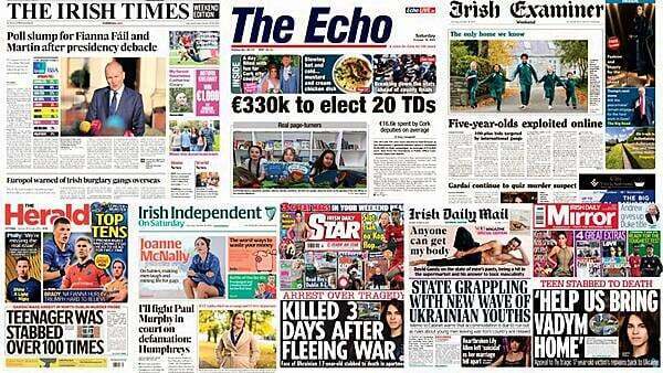 The Irish Times leads with the results of a poll showing that support for Fianna Fáil has slumped, while Taoiseach Micheál Martin's personal rating has fallen by 11 percentage points to its lowest level in more than five years.