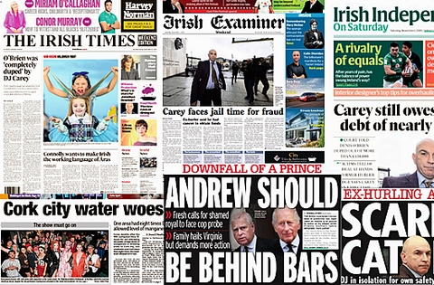 The Irish Examiner also leads with DJ Carey, as he is set for jail time for fraud.