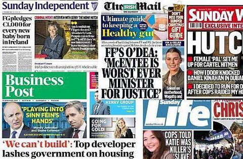 The Sunday World's front page also leads with a Gerry Hutch interview, in which we states that a female friend set him up for cartel hitmen, and how he decided to run in the general election after his home was raided.