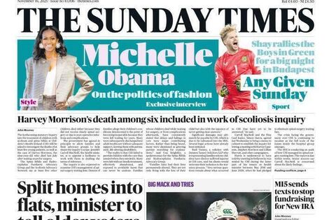 A variety of stories feature on Ireland's front pages on Sunday morning, including scoliosis stories relating to Harvey Morrison, and Gerry Hutch being hit with a €790,000 tax bill.