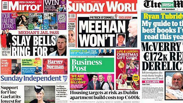 A variety of politics and crime stories dominate the headlines on Sunday, with the tabloids taking a look at Brian Sheehan, the getaway driver jailed for the murder of journalist Veronica Guerin.
