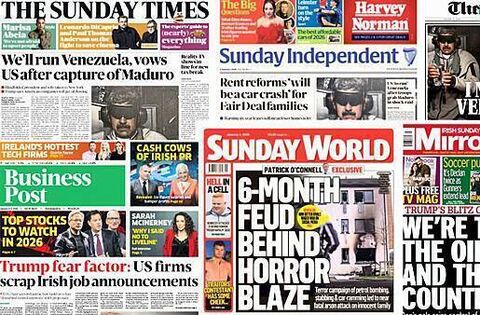 The Irish Sunday Mirror reports on the daring raid and capture of Venezuelan leader Nicolás Maduro on Saturday morning. US President Donald Trump has subsequently announced that the US will run the country until there can be a "safe transition".