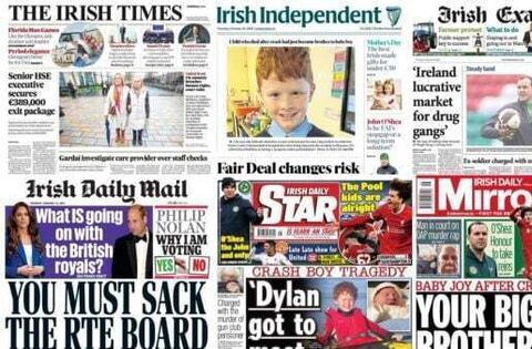 The Irish Daily Mirror and Irish Daily Star report on the tragic death of a 10-year-old boy after a road collision in Co Clare.