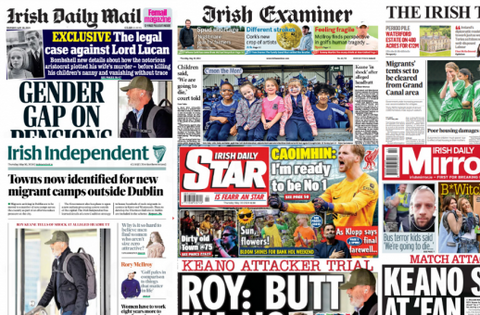 The Irish Independent reads: 'Towns now identified for new migrant camps outside Dublin', while the Irish Daily Mail reports "women have to work eight years more than men" to build up the same pension pot.