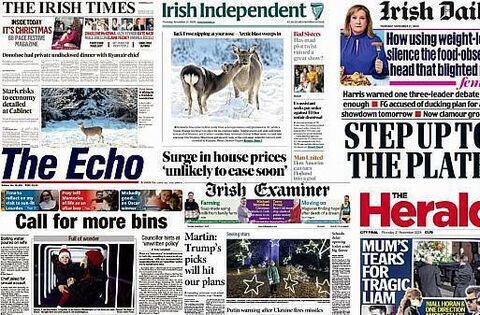 The paper's front page also features a piece on how the Cabinet was given a stark warning on Wednesday about potentially damaging economic fallout for Ireland from the unsettled global situation and the return of Donald Trump to the White House in 2025.
