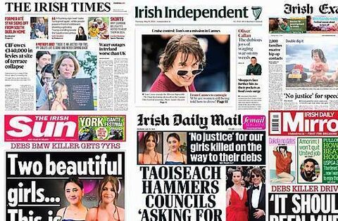 The Irish Sun, Irish Examiner, Irish Daily Mirror and Irish Daily Star all cover the jailing of a man for dangerous driving causing the deaths of two teenagers in Co Monaghan.