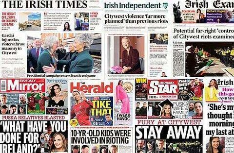 The Irish Times, Irish Examiner, Irish Daily Star, Irish Independent and The Herald lead with the riots at Citywest in Dublin over the past number of nights.