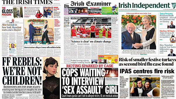 A possible shortage of turkeys at Christmas, and rows between Fianna Fáil TDs make the front pages of Thursday's papers.