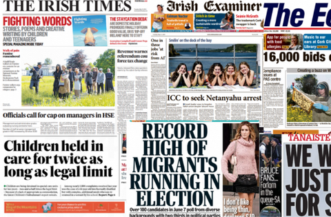 The arrest warrant issued by the International Criminal Court for Benjamin Netanyahu and a cap on the number of managers in the HSE are among the headlines in Tuesday's papers.