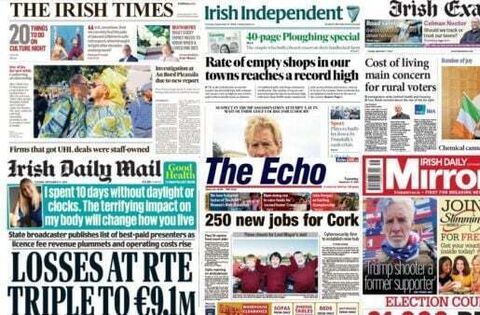 Budget stories, the latest assassination attempt on former US President Donald Trump and the latest Irish citizenship ceremony are just a few things leading Ireland's front pages on Tuesday.