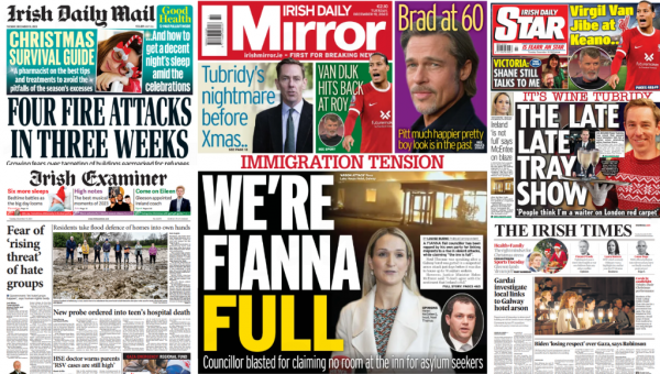 The fallout from the Ross Lake House hotel fire in Galway which was set to be used to accommodate asylum seekers continues, as it dominates the headlines in Tuesday's papers.