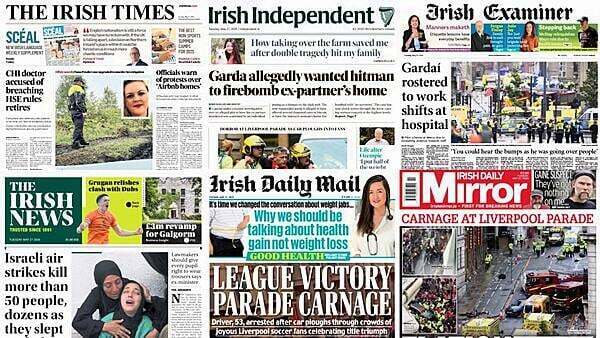 The Irish Daily Mail, Irish Daily Mirror and The Herald report from the scene in Liverpool after a car drove into a crowd of football fans.