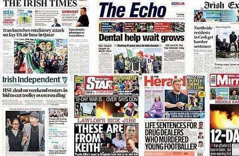 Iran launching an attack on a US air base in Qatar dominates the front pages of Irish newspapers on Tuesday.