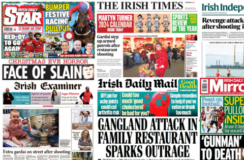 The response to a shooting in Dublin on Christmas Eve dominated the national newspaper front pages for St Stephen's Day.