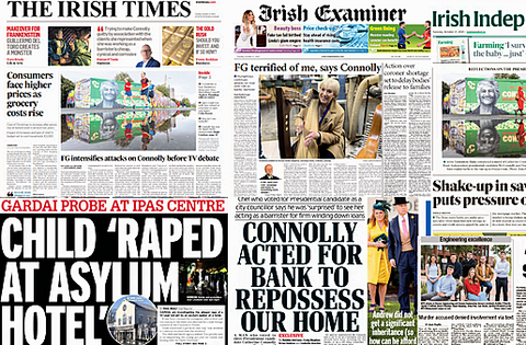 The Irish Daily Mirror leads with a child who was raped by a man at the Citywest asylum seeker hotel.