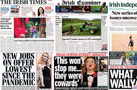 The Irish Daily Mirror leads with the two Drag Queens who were assaulted in Cork at the Jazz festival.