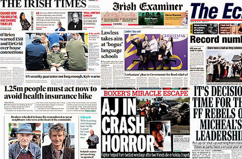 The Irish Examiner leads with Minister for Education James Lawless taking aim against "bogus" language schools, claiming some are acting as a back door for immigration.
