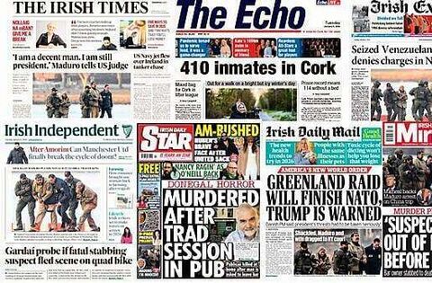 The Irish Times leads with Maduro telling a US judge he had been kidnapped when he and his wife appeared in a federal court in New York yesterday.