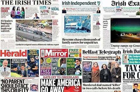 Donald Trump's plans to take Greenland while EU leaders attempt to prevent a trade war are among the various topics featured on Irish front pages on Tuesday morning.