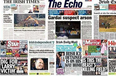 The Herald leads with two criminals who dumped the dismembered body of teenager Keane Mulready -Woods across different parts of Dublin being jailed for a total of 12 years yesterday by the Special Criminal Court.
