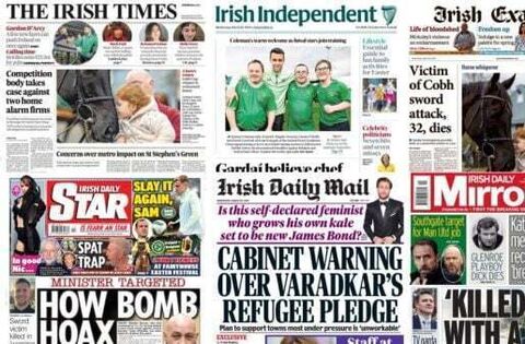 The Irish Examiner, Irish Independent and Irish Daily Mirror report on the death of a man who was attacked with a sword in Cobh, Co Cork. Ian Baitson, who was in his early 30s, died in hospital four days after the incident.