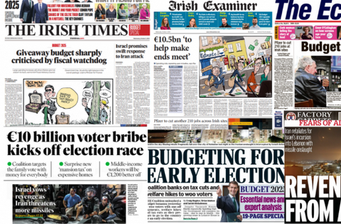 The Irish Daily Mail also says the Government are budgeting for the next election. Their front page is a phot of the missile blitz by Iran on Israel.