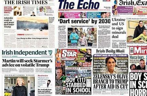 News of a child (11) being stabbed by a fellow pupil in a north Dublin primary school dominates the front pages of Irish newspapers on Wednesday, as well as talks between the US and Ukraine.