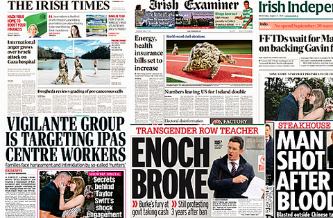 The Irish Examiner leads with energy bills and health insurance is set to increase ahead of the budget, with VHI increasing their prices from October.